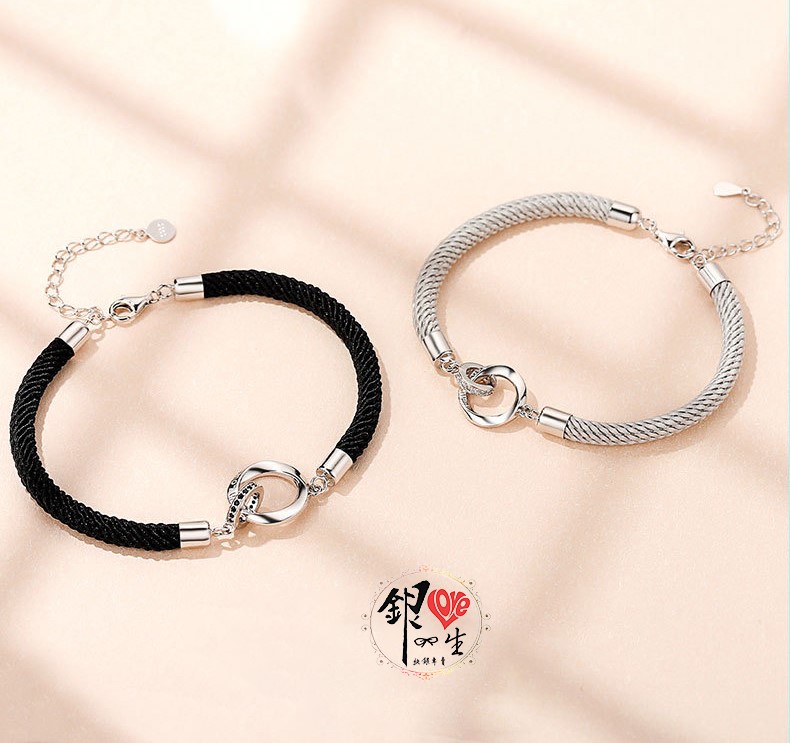 商品名稱 : 銀愛一生s925純銀 莫比烏斯環 繩結式 情侶手鍊