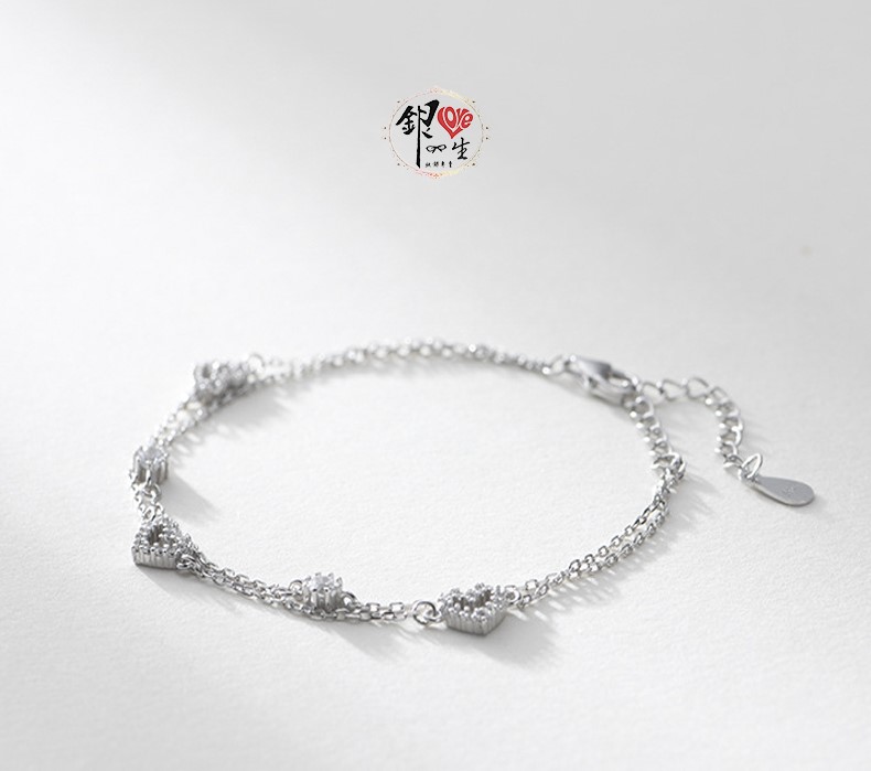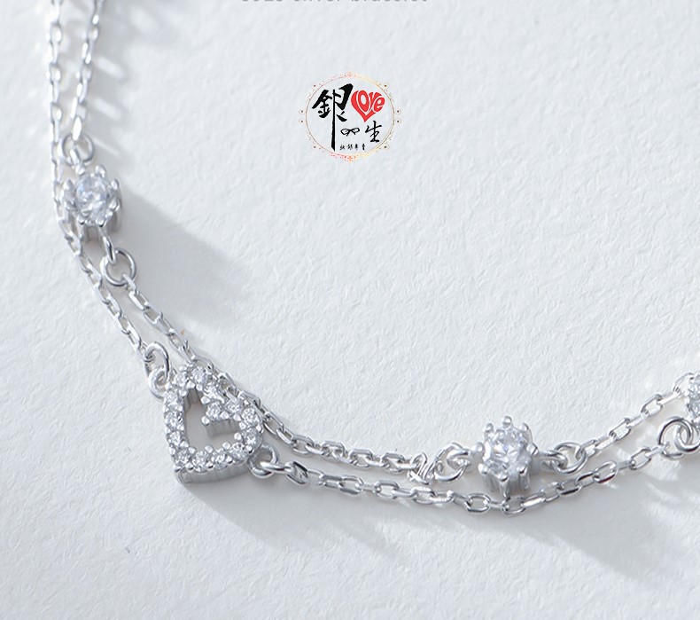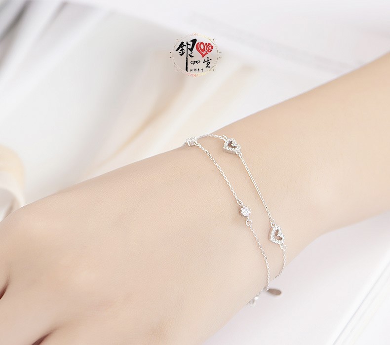 商品名稱 : 銀愛一生 s925純銀 雙層 愛心造型 手鍊 • 鏡面拋光,細緻光滑,金屬部分皆為925純銀,敏感肌膚均可安心,配戴舒適 • 獨特切割技術使得進口的優質莫桑石,璀燦絢爛更甚真鑽,閃爍耀眼光芒 • 可免費升級為精緻禮盒 (附加產品保證書)
