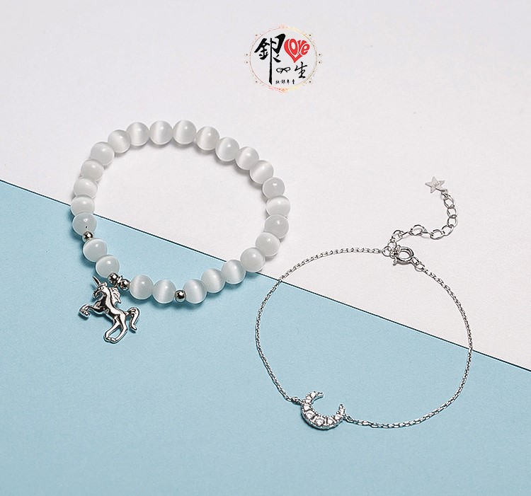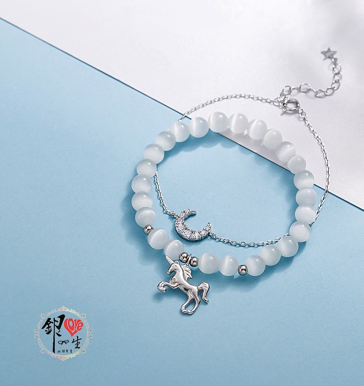 商品名稱 : 銀愛一生 s925純銀 獨角獸 貓眼石 雙條 手鍊