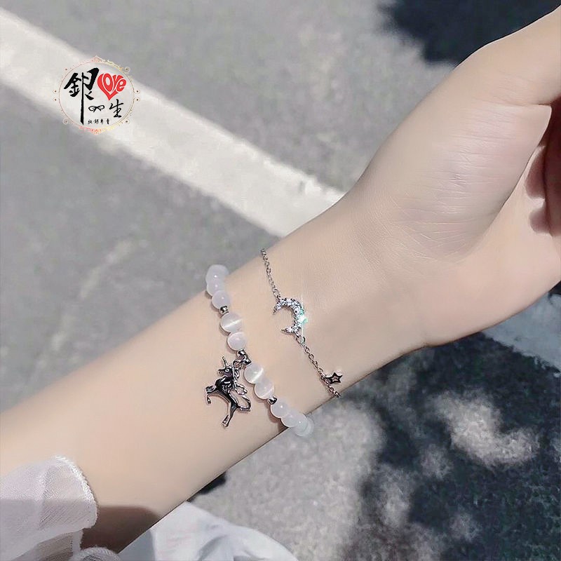 s925純銀 獨角獸 貓眼石 雙條 手鍊