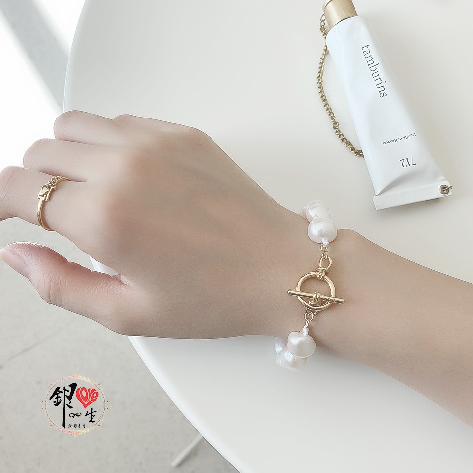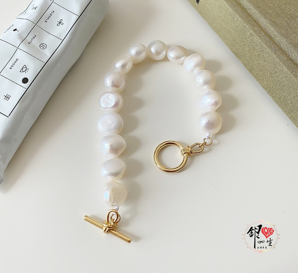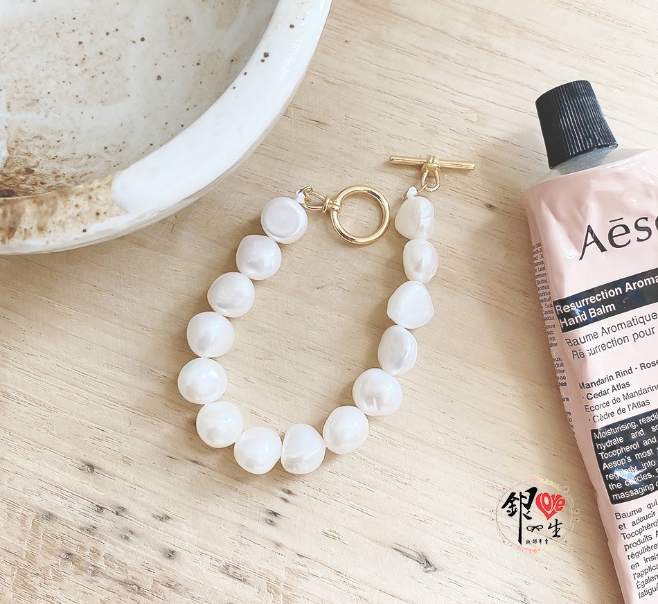 商品名稱 : 銀愛一生 s925純銀 天然 巴洛克珍珠 卡扣式 典雅 手鍊