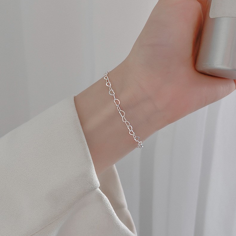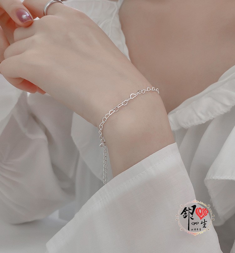 商品名稱 : 銀愛一生 s925純銀 心心相連 手鍊 • 獨特工藝處理,金屬部分皆為925純銀,敏感肌膚均可安心,配戴舒適 • 可免費升級為精緻禮盒 (附加產品保證書)