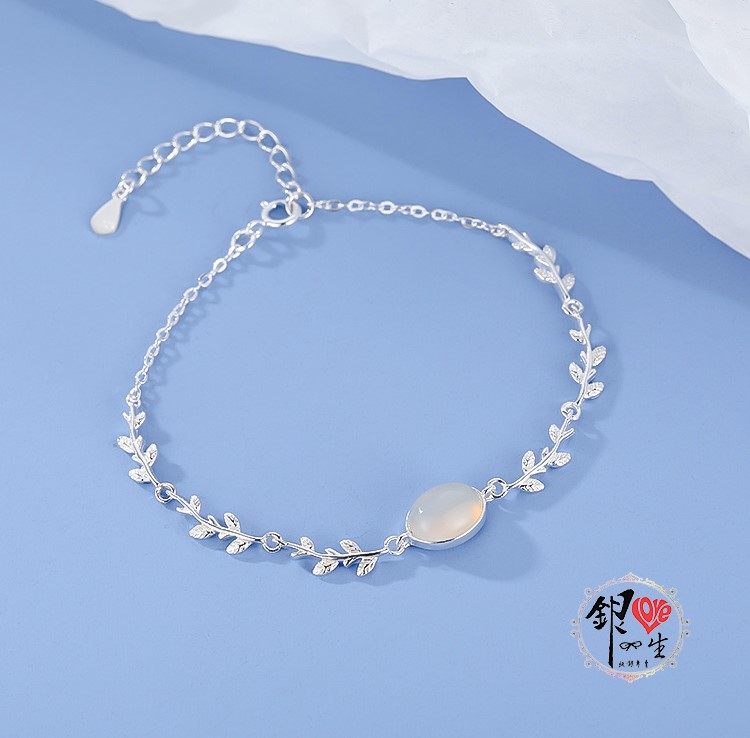 商品名稱 : 銀愛一生 s925純銀 森林系 樹葉造型 瑪瑙 手鍊